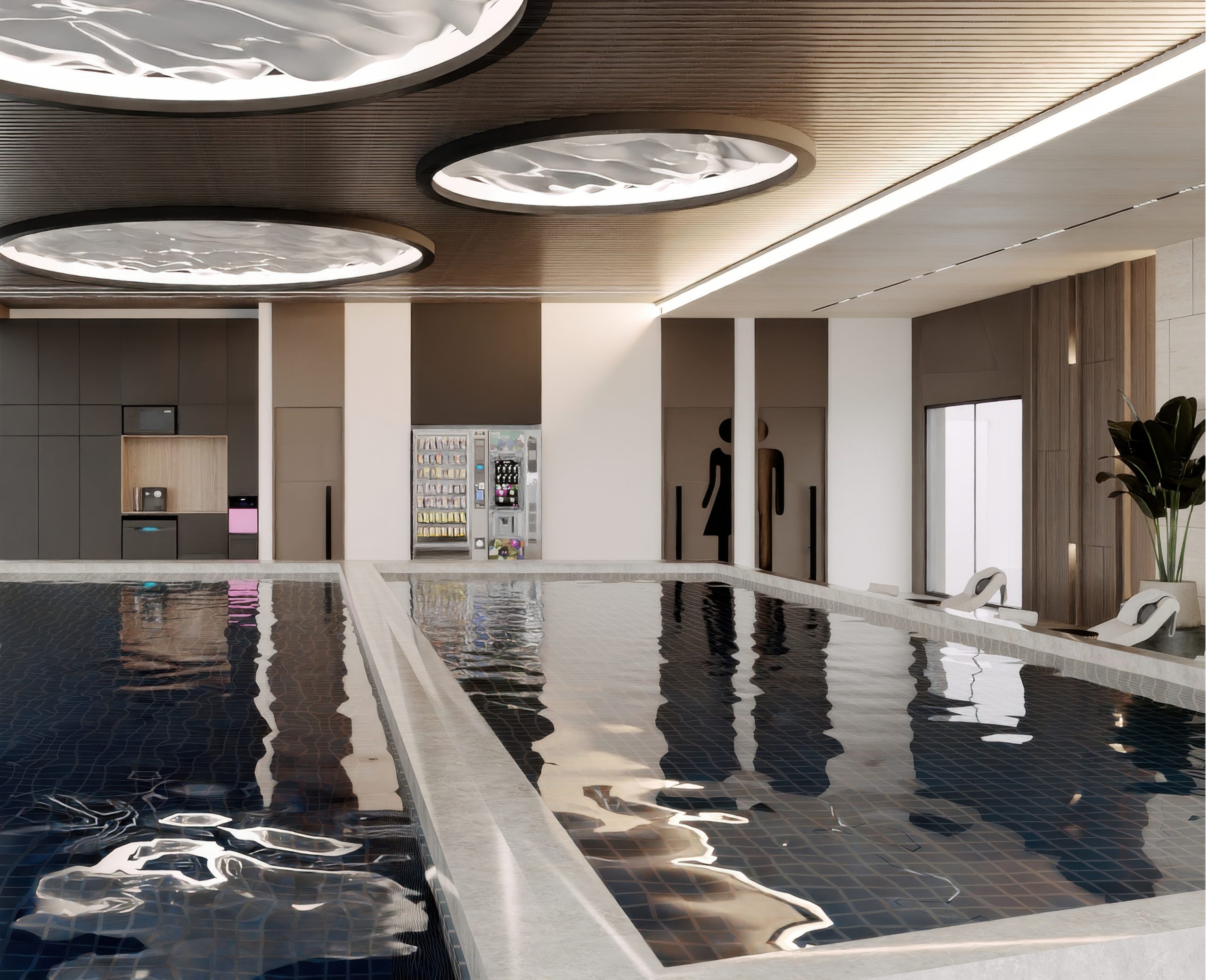 dédiée aux commodités. Les résidents profitent d’un restaurant raffiné, d’un hammam, d’une piscine intérieure, d’un lounge